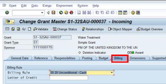 BBB.1. The following grant is in the Status of Closing/Operational Closing. The Default Posting Block Indicators for Value Types 50, 51, 52, 64, 65, 80, 81 is ticked, which means new postings against these value types is disallowed.
