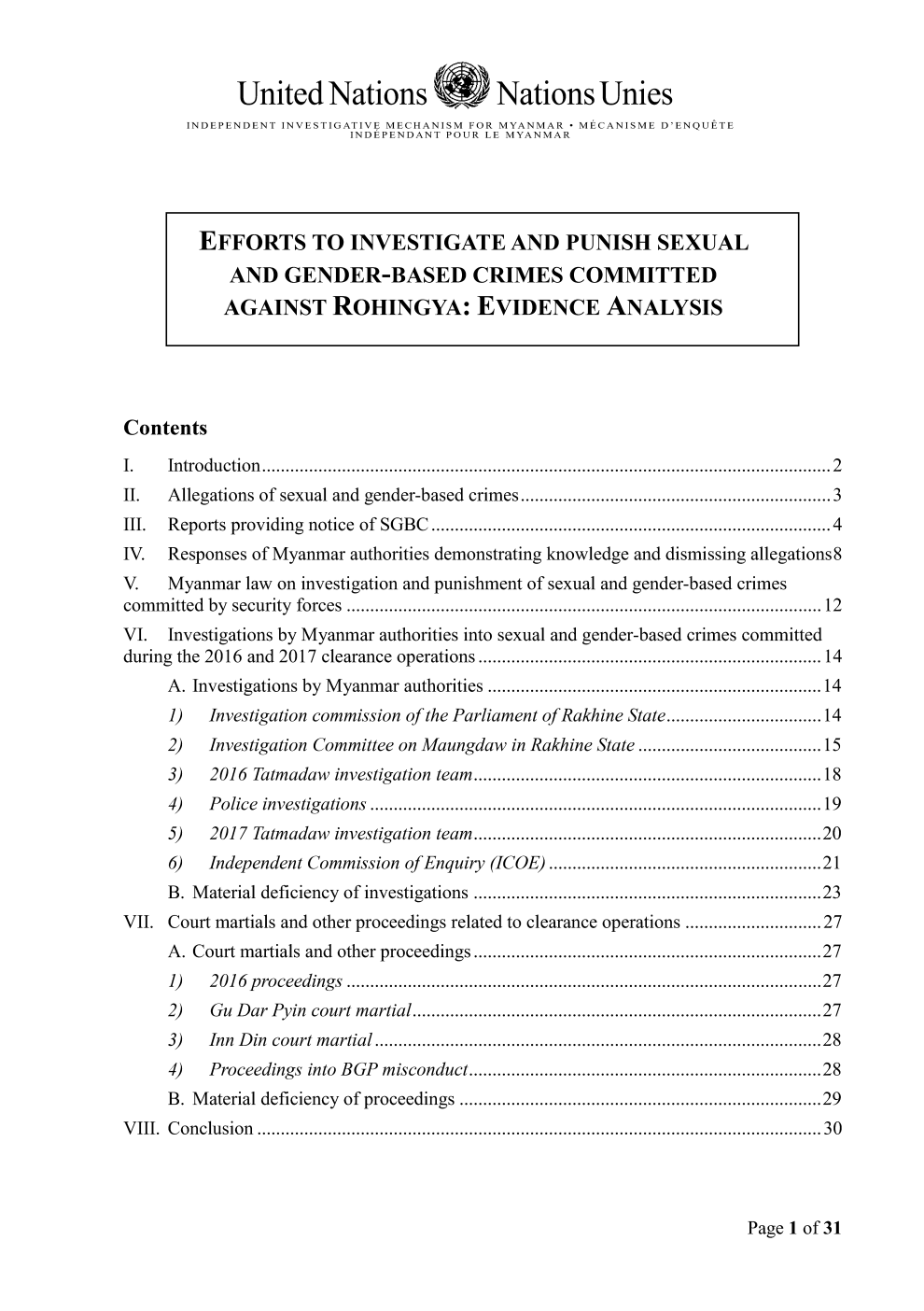 Efforts to Investigate and Punish Sexual and Gender-Based Crimes Committed Against Rohingya: Evidence Analysis